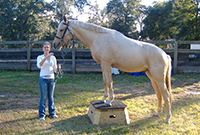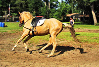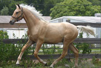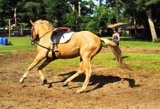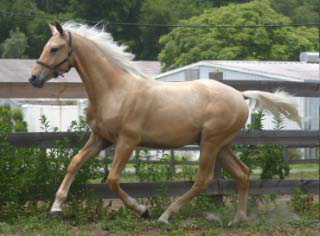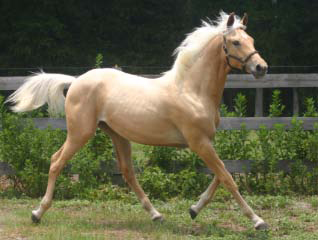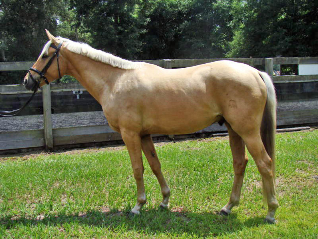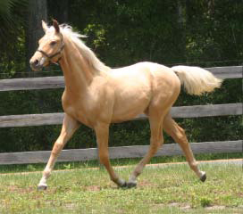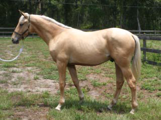 Awarded First Premium with AWR! Handsome , long legged, pretty creamy palomino color with small star on his head. Cute typey face, beautiful uphill neck, pretty ground covering gaits and the temperment of a teddy bear. He is excellent for the farrier, ties and stands quietly in the cross-ties, bathes, clips and trailers well also. Started undersaddle, lunges well,, currently being ridden 3 days a week and is being long-lined down the roads/trails once a week. Bailey already stands 16.1 hands and we expect he will full mature to atleast 16.2. An Excellent AA prospect for any discipline!
