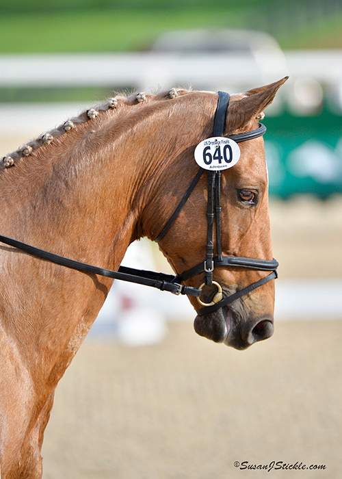 2007 16.1 hand Oldenburg x German Warmblood Stallion by Blue Eyed Dream GF out of Wrummy. Awarded First Premium Premier and Site Reserve Champion at his AWR inpsection with an overall score of 8.1! Benji has striking looks, movement and a willing temperment making him a perfect candidate to be alongside his full sister Buttercup and his half-brother Montego for our future driving team of 4 golden palomino warmbloods! He is currently competing at Second Level dressage and training at 3rd level as well being a pair in driving.