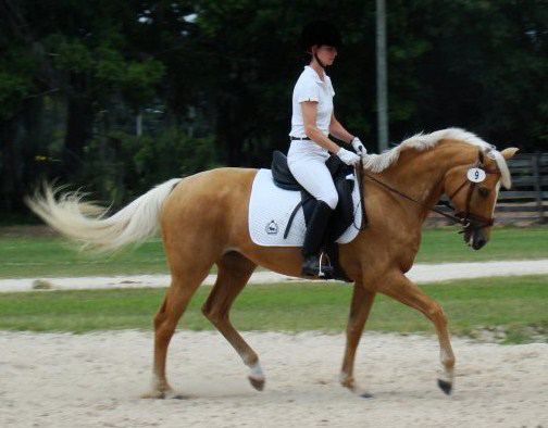 Buttercup is a 16 hand Oldenburg x German Warmblood palomino mare bred by Equivale. Buttercup was awarded First Premium Premier at her American Warmblood Registry inspection as a weanling. She is sired by the imported ZFDP stallion Blue Eyed Dream and out of the Oldenburg mare Wrummy. Buttercup was scoring as high as 73% in Training Level dressage as a 4 year old and is now as a 5 y.o. moving up to first level so far scoring as high as 66%!
