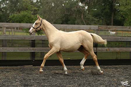 Malini, Born March 2006 Oldenburg x German warmblood Palomino filly by Mascrapone, AWR First Permiun registered/branded. Malindi is a sweet girl with correct conformation, lots of suspension and engagement in her movement. She has a big beuatiful blaze and 3 stockings. Sure to be a wonderful dressage horse or breed lovely babies!