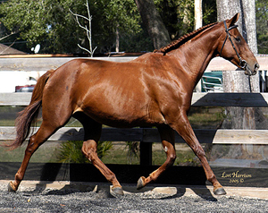 2004 Chestnut Trakehner mare bred by Valhalla Farm. Lallique joined our broodmare herd in 2015. She shows an excellent natural uphill carriage and carrying from behind.