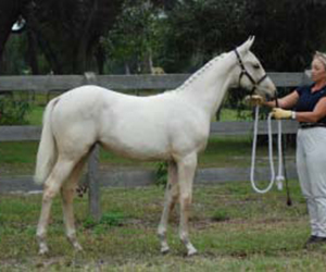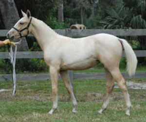 Nanett's 07 Cremello Colt by Blue Eyed Dream GF. Awarded First premium with AWR.