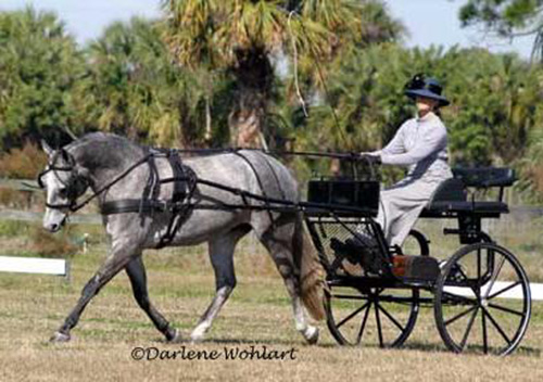 Out of Dutch Warmblood mare Inca by Iron Spring's Sebastian. Florida State Champion Novice Pleasure Driving Horse 2003. Purchased by Claudia Roth.